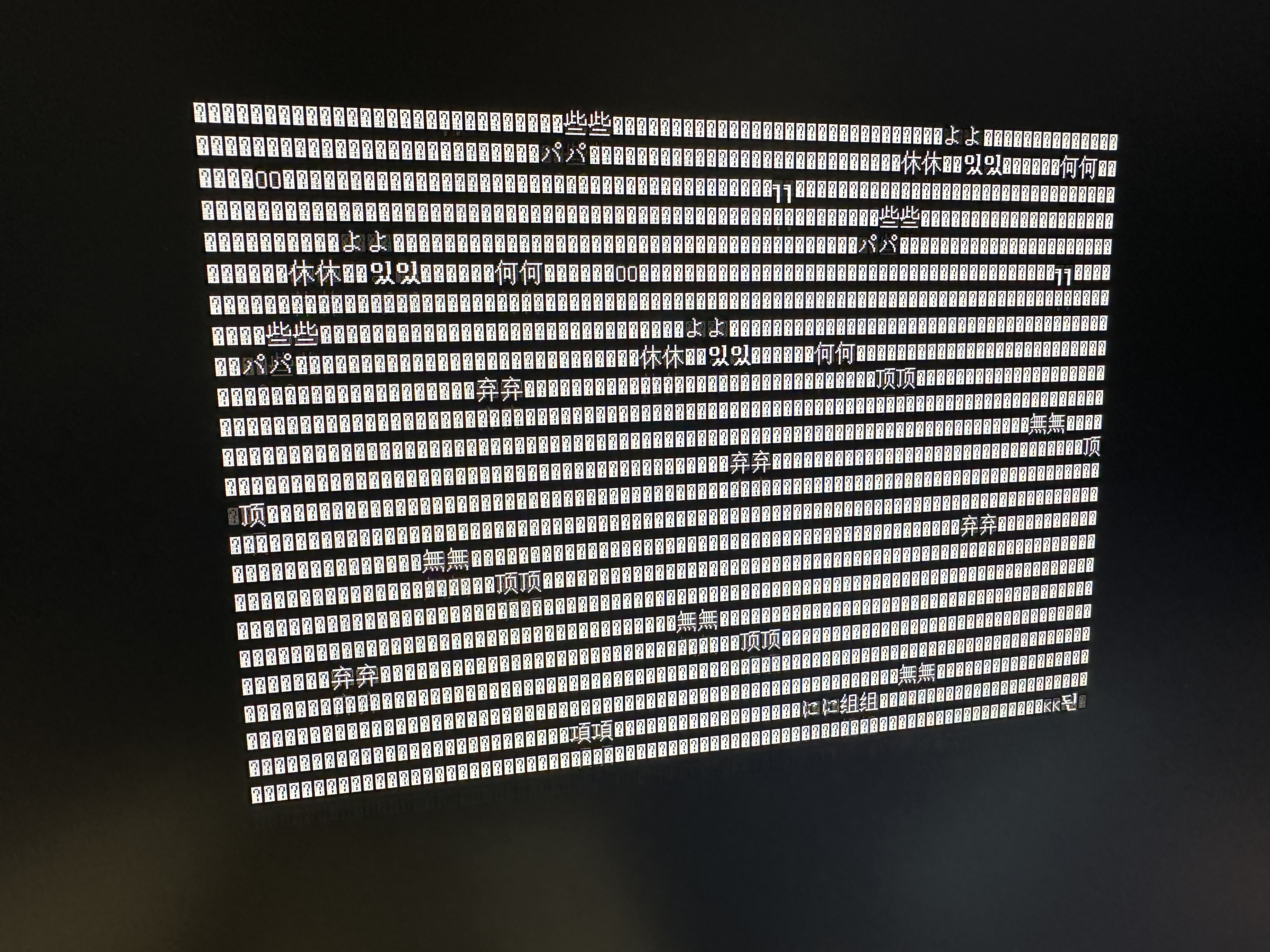 また、バイナリをいじり、少し長い文字列を表示しようとした。機械語は読めないので適当に長くしたら、画面がまずいことになった。