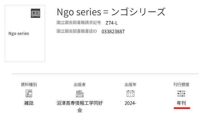 発行頻度が決まっている本(ンゴシリーズも年1回を予定している)は国立国会図書館サーチ上での扱いが変わるので、発行の頻度をしっかり申告する。
