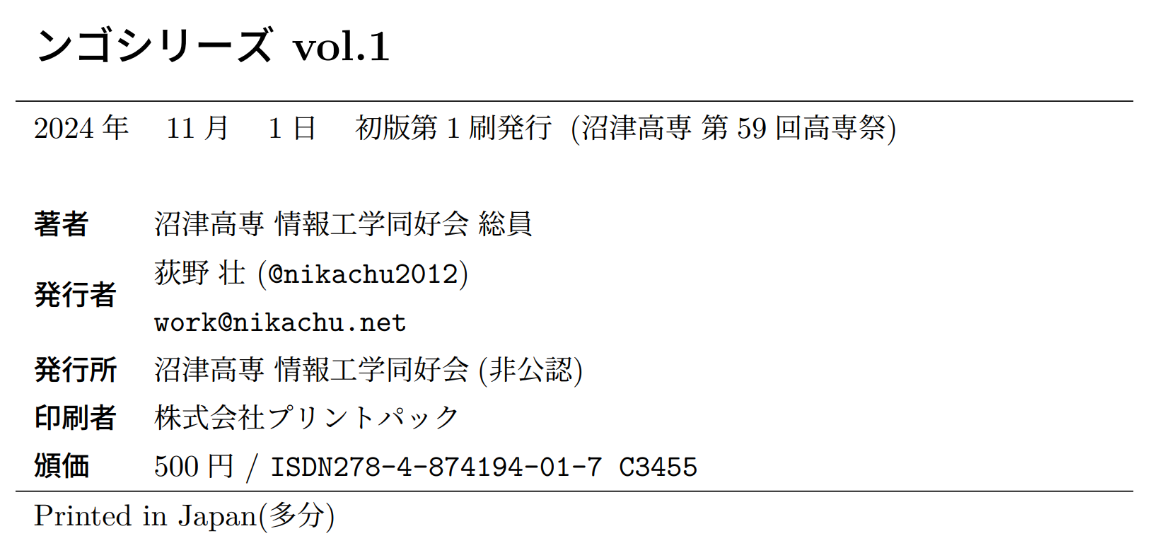 ンゴシリーズの奥付の画像を貼っておくので参考にしてほしい。