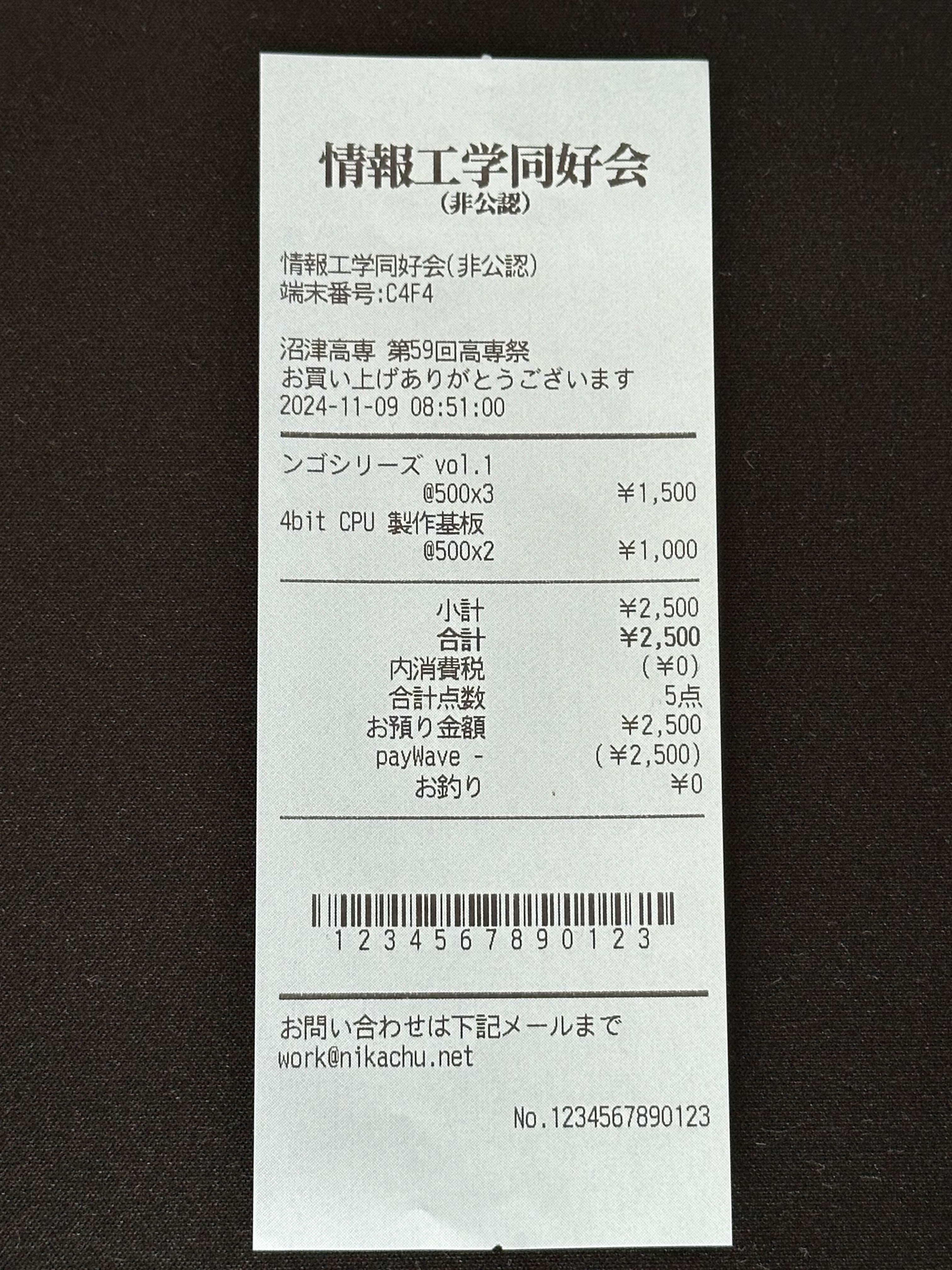 実際のレシートはこんな感じにした。(クリックで拡大できる)